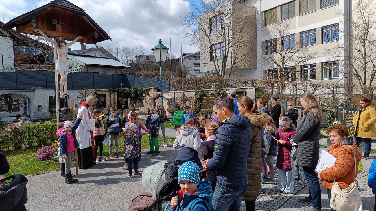 Heuer hatten wir wieder Glück mit dem Wetter und konnten den Kinderkreuzweg im Freien durchführen.
