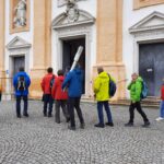 Eine kurze nette Begegnung gab es beim Aufgang zur Kirche. Hier traf unsere Pilgergruppe auf eine Pilgergruppe aus der Pfarre Itzling, die über Maria Plain zum Stift Mattsee unterwegs war – unter Begleitung ihres Pfarrers „unseres ehemaligen Kooperators“ Johann Schwaighofer.